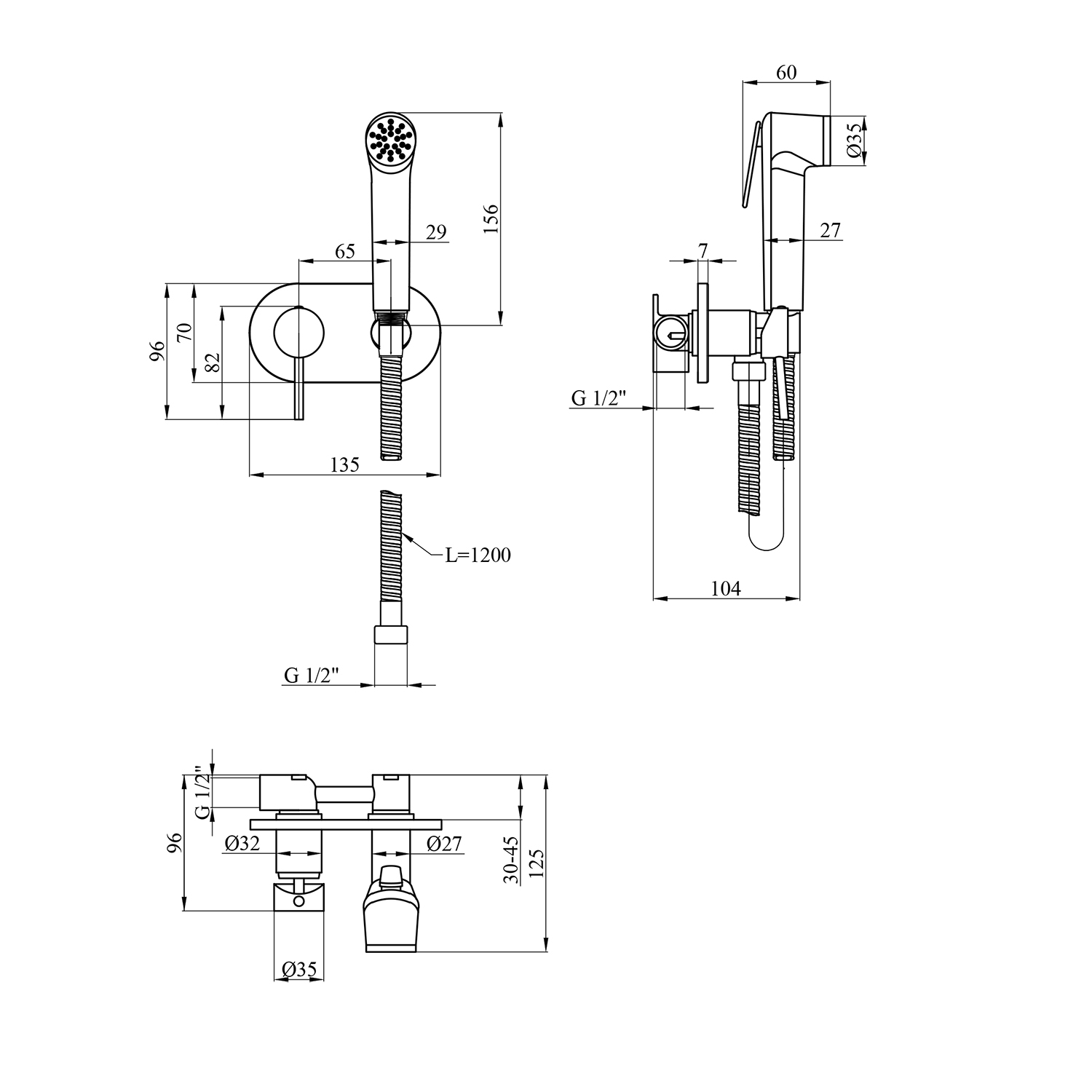 Описание Набор для гигиенического душа скрытого монтажа Kroner KRP Bidet C086 код товару CV031552