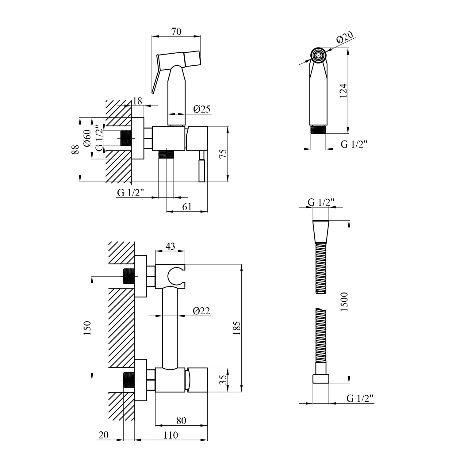 Характеристики Набор для гигиенического душа со смесителем Kroner KRP Edelstahl код товару CV027929