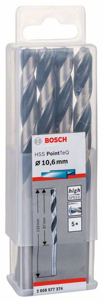 Характеристики Сверло спиральное HSS PointTeQ 10,6 мм BOSCH код товару 2608577274