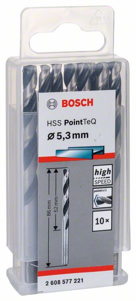 Характеристики Спiral'ное свердло HSS PointTeQ 5,3 мм BOSCH код товару 2608577221