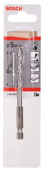 Характеристики Сверла спиральные по дереву 1/4" 5 x 52 x 99 мм BOSCH код товару 2608595521