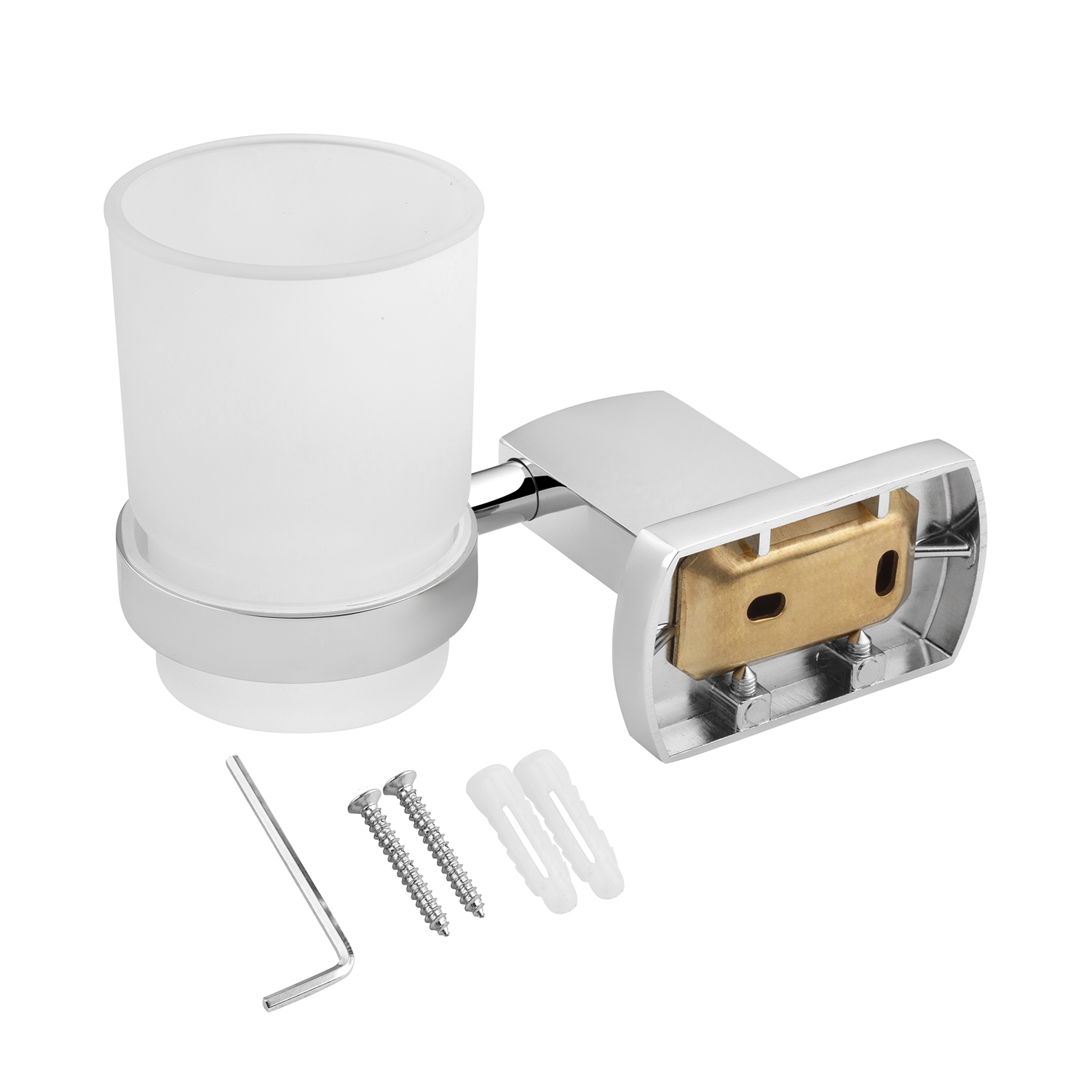 Стакан с держателем для ванной комнаты Kroner KRP Graz - C95602 – элегантное сочетание глянцевого хрома и прозрачного стекла, что гармонично дополняет интерьер ванной комнаты. Благодаря настенному монтажу изделие обеспечивает удобное хранение зубных щеток и аксессуаров, оставляя раковину свободной. Хромированное покрытие не только придает блеск, но и защищает металл от влаги и ржавчины. Это идеальный выбор для тех, кто ценит качество, функциональность и современный дизайн.