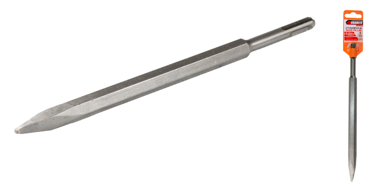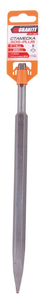 Стамеска пикообразная GRANITE SDS-PLUS 14x250 мм с победитовой напайкой идеально подходит для работы с бетоном и кирпичом. Прочная конструкция обеспечивает долговечность и эффективность.