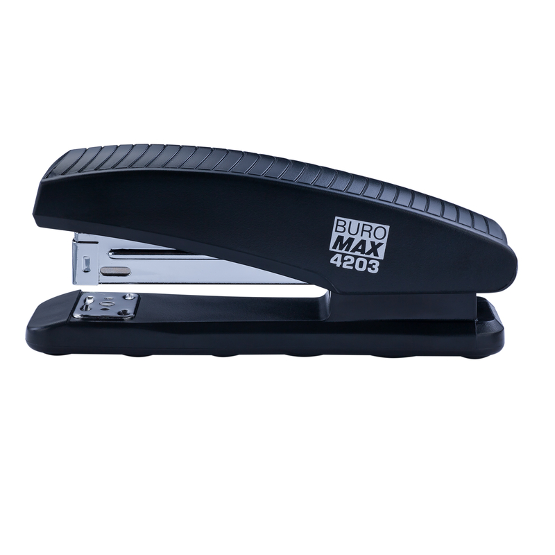 Пластиковий степлер BUROMAX з продуманим та ергономічним дизайном підкреслить індивідуальність та стане незамінним атрибутом при роботі з документами. Скріплює заявлену кількість аркушів (20 л. паперу 80 г/м²) і навіть більше. Корпус із пластику з рельєфною вставкою чорного кольору. Степлер підходить для повсякденного використання як удома, так і в офісі.