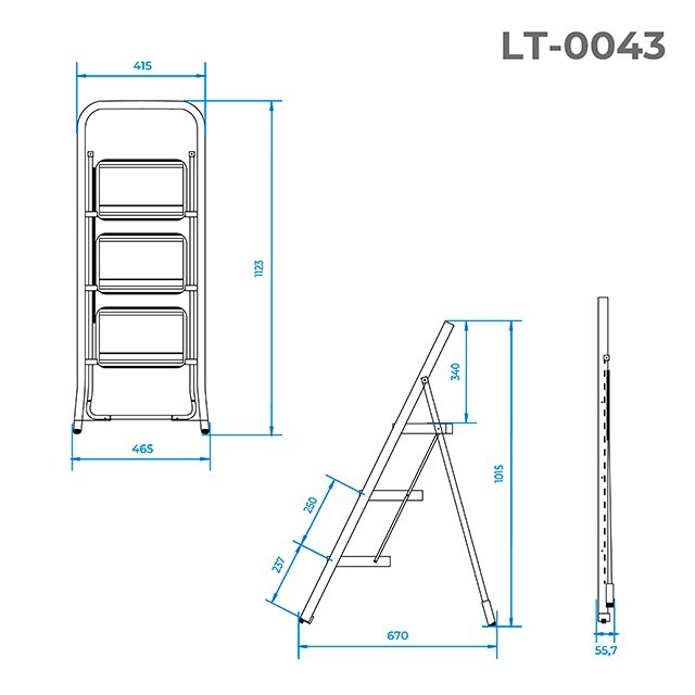 Характеристики Стремянка 3 ступени INTERTOOL LT-0043 300x200 мм код товару LT-0043