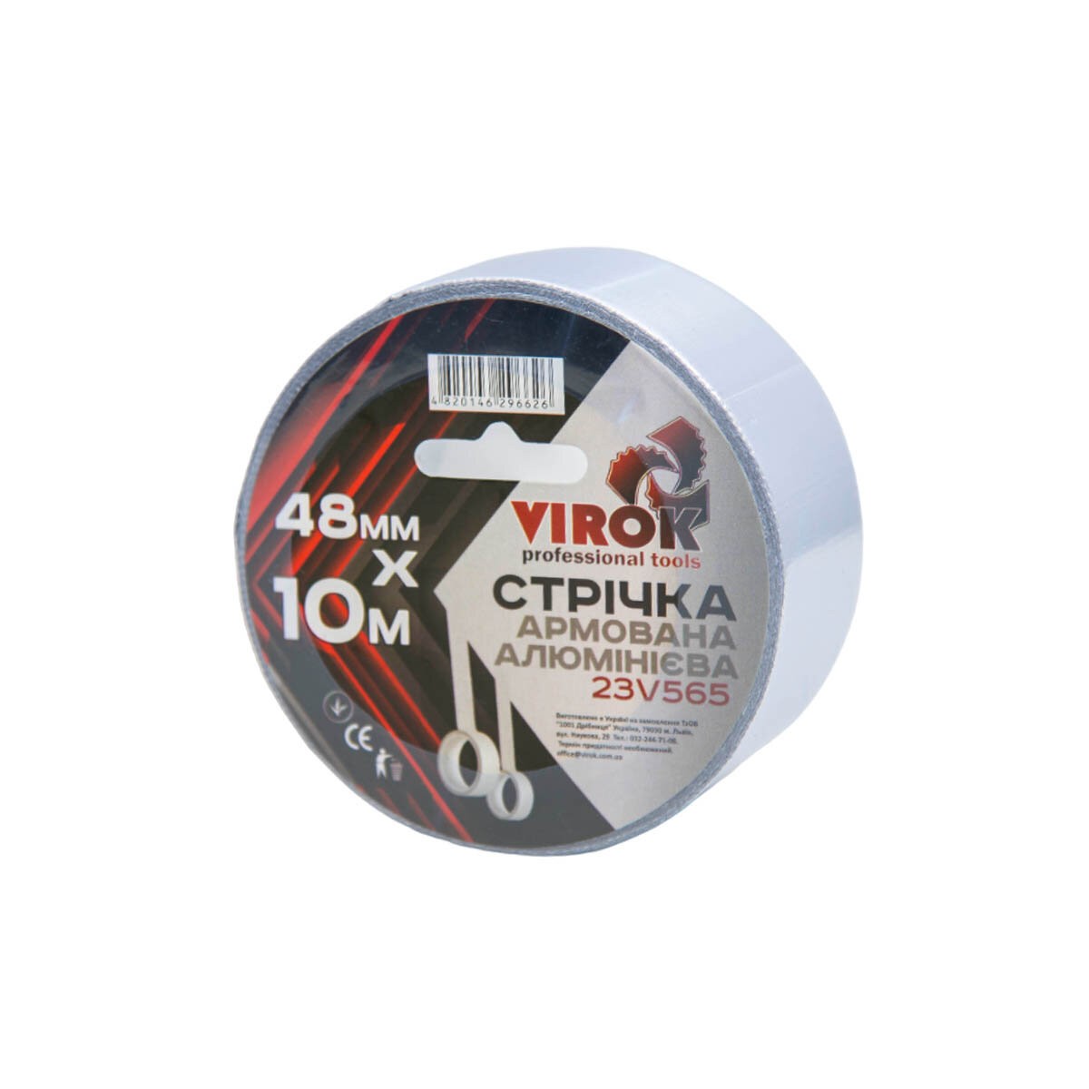 Характеристики Армированная алюминиевая клейкая лента VIROK 48мм х 10м х 150мкм код товару 23V565