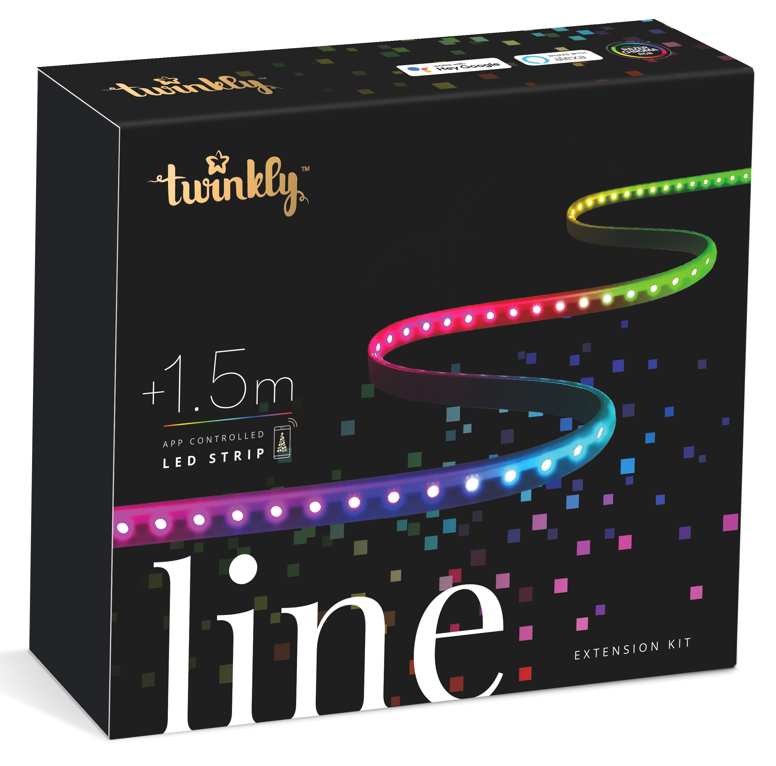 Twinkly Line - сучасне кероване дистанційно розумне світлодіодне підсвічування для оздоблення домашнього інтер'єру. За допомогою цього продукту можливе збільшення базової довжини Twinkly Line вдвічі, аж до 3 м та, водночас, збільшення кількості ламп до 200 шт. Twinkly Line надає користувачам творчу можливість створювати індивідуальне освітлення у всьому житловому приміщенні, ефектно підкреслюючи елементи інтер'єру чи строкато оголошуючи про власні ідеї та акценти. Це преміум-світлодіодна стрічка, готова до використання з коробки, з сотнею світлодіодних ламп типу RGB на міцній клейовій основі зі зворотного боку.