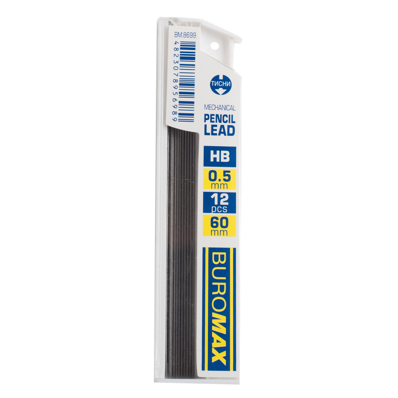 Високоякісний грифель для механічних олівців BUROMAX – ідеально підходить для механічних олівців BUROMAX (*звертайте увагу, щоб діаметр грифеля олівця відповідав діаметру стрижня). Покращений пластиковий контейнер дозволяє зручно зберігати, транспортувати та витягувати стрижні.