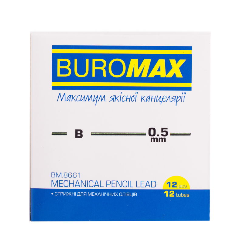 Характеристики Стрижні до механічних олівців, B, 0,5 мм, 12 шт. B (Im-off) код товару BM.8661