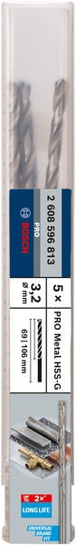 Характеристики Сверло по металлу HSS-G, DIN 340, 3,2 x 69 x 106 мм BOSCH код товару 2608596813