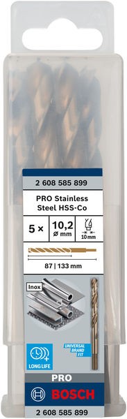 Характеристики Сверло по металлу HSS-Co, DIN 338, 10,2 мм, BOSCH код товару 2608585899