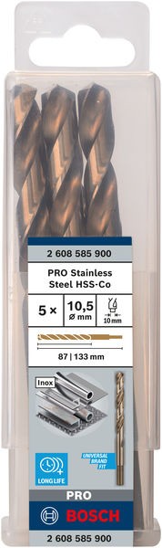 Описание Свердло по металлу HSS-Co, DIN 338, 10,5 x 87 x 133 мм BOSCH код товару 2608585900