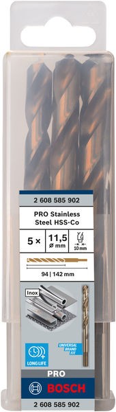 Характеристики Сверло по металлу HSS-Co, DIN 338, 11,5 x 94 x 142 мм BOSCH код товару 2608585902