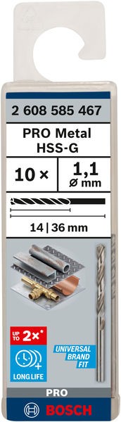 Характеристики Сверло по металлу HSS-G, DIN 338, 1,1 x 14 x 36 мм, BOSCH код товару 2608585467