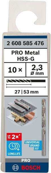 Характеристики Свердло по металлу HSS-G, DIN 338, 2,3 x 27 x 53 мм, BOSCH код товару 2608585476