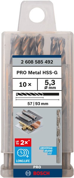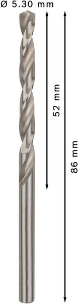 Характеристики Сверло по металлу HSS-G, DIN 338, 5,3 x 52 x 86 мм BOSCH код товару 2608585492