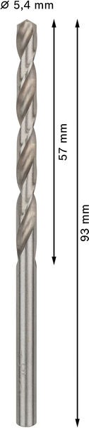 Характеристики Сверло по металлу HSS-G, DIN 338, 5,4 x 57 x 93 мм BOSCH код товару 2608585493