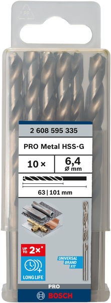 Характеристики Свердло по металлу HSS-G, DIN 338, 6,4 x 63 мм, BOSCH код товару 2608595335