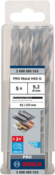 Характеристики Свердло по металлу HSS-G, DIN 338, 9,2 x 81 x 125 мм, BOSCH код товару 2608585516
