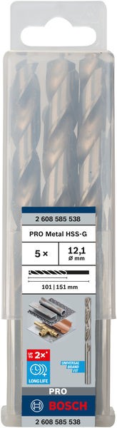 Характеристики Сверло по металлу HSS-G, DIN 338, 12,1 x 101 мм, BOSCH код товару 2608585538