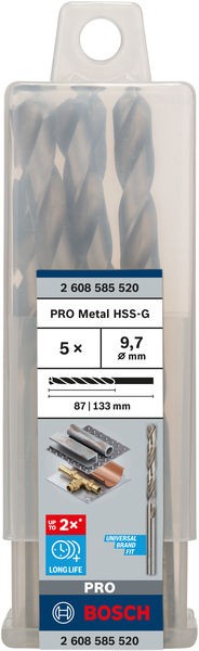 Характеристики Свердло по металлу HSS-G, DIN 338, 9,7 x 87 мм, BOSCH код товару 2608585520