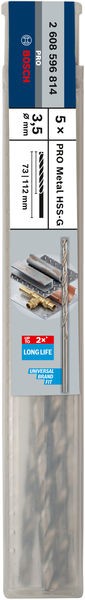Характеристики Свердло по металлу HSS-G, DIN 340, 3,5 x 73 x 112 мм, BOSCH код товару 2608596814