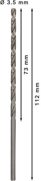 Описание Свердло по металлу HSS-G, DIN 340, 3,5 x 73 x 112 мм, BOSCH код товару 2608596814