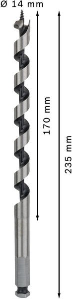 Характеристики Гвинтові свердла по дереву BOSCH, 11,1 мм, 14 x 170 x 235 мм код товару 2608597628