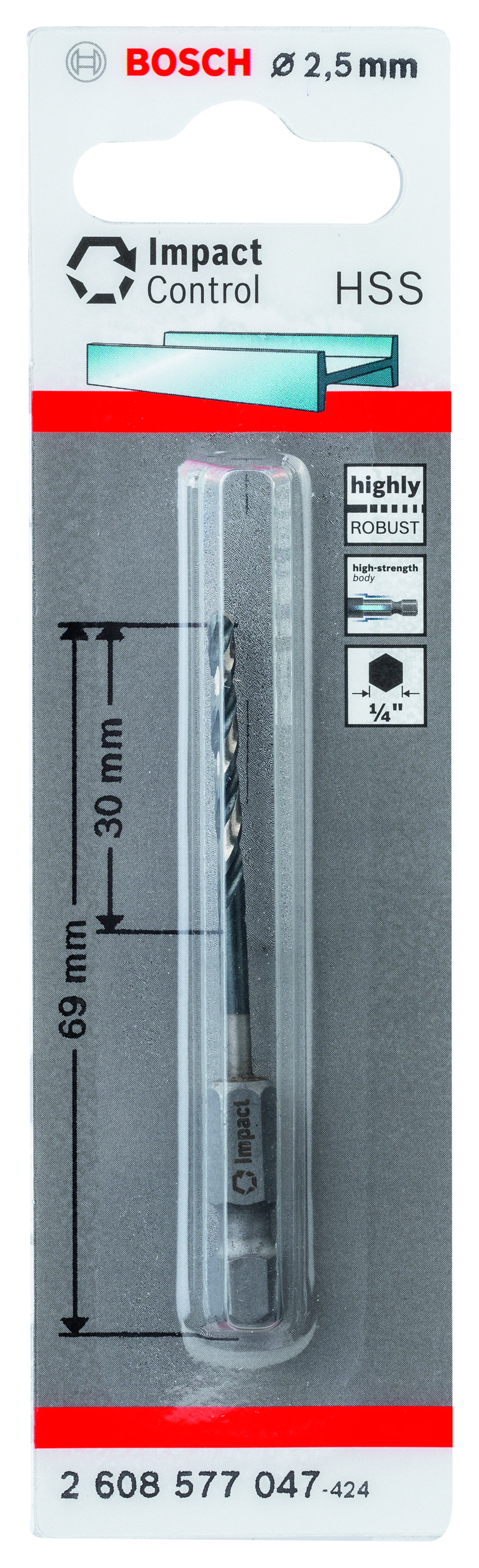 Характеристики Сверло по металлу 2,5 мм с шестигранным хвостовиком BOSCH код товару 2608577047