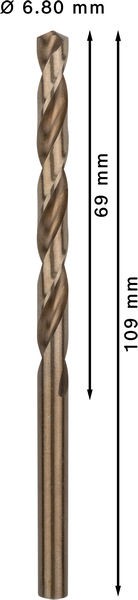 Характеристики Сверло по металлу HSS-Co, DIN 338, 6,8 x 69 x 109 мм, BOSCH код товару 2608585891