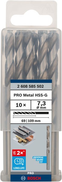 Характеристики Свердло по металлу HSS-G, DIN 338, 7,3 x 69 x 109 мм, BOSCH код товару 2608585502