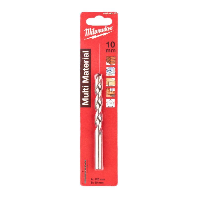 Характеристики Сверло по мультиматериалам MILWAUKEE, Ø10,0x120х80мм код товару 4932430160