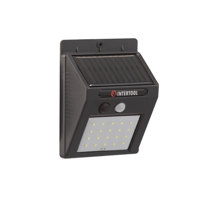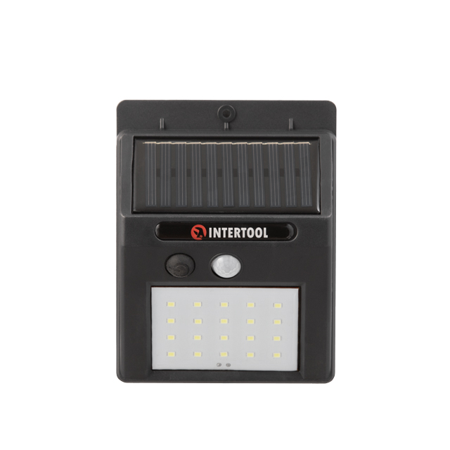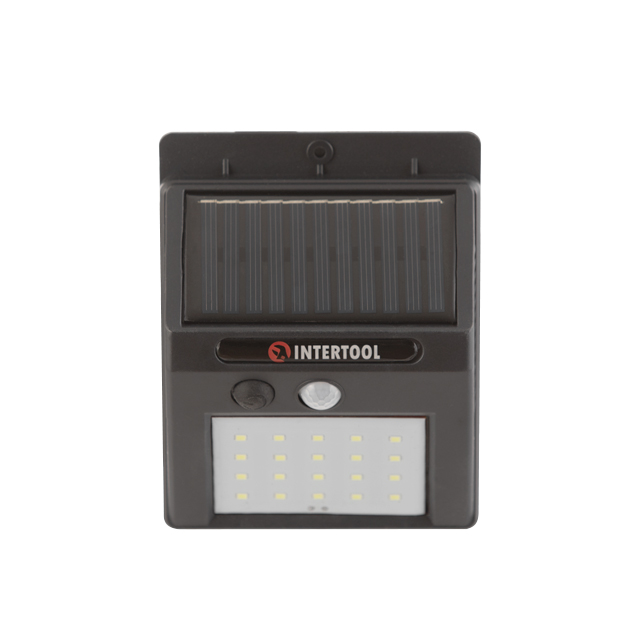 Характеристики Светильник настенный аккумуляторный 20SMD с солнечной панелью INTERTOOL код товару LB-0112