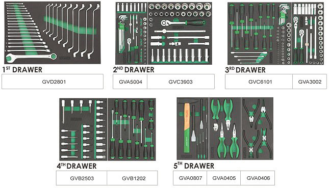 Тележка Pro-Plus с инструментом, 7 секций, 261 ед., серая TOPTUL код товару GE-26109 Toptul