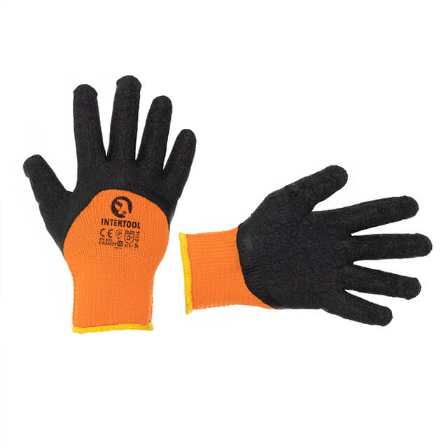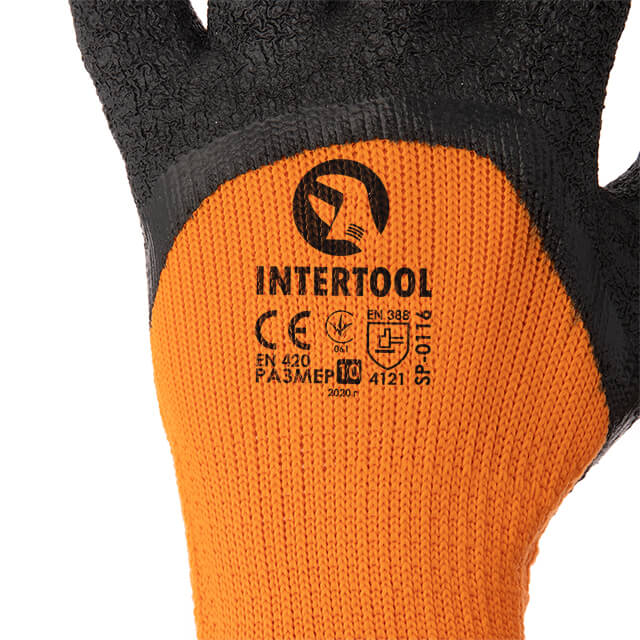 Описание Утепленная акриловая трикотажная перчатка, оранжевая, латекс 10 INTERTOOL SP-0116 код товару SP-0116