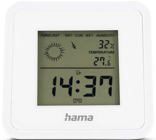 Термометр-гігрометр портативний прилад, призначений для вимірювання температури і вологості повітря усередині приміщення. Hama - простий в експлуатації та надійний прилад, який ідеально підходить для вимірювання вологості в офісі, дитячій кімнаті, теплиці. Значки у вигляді смайликів допомагають вам класифікувати значення показників.