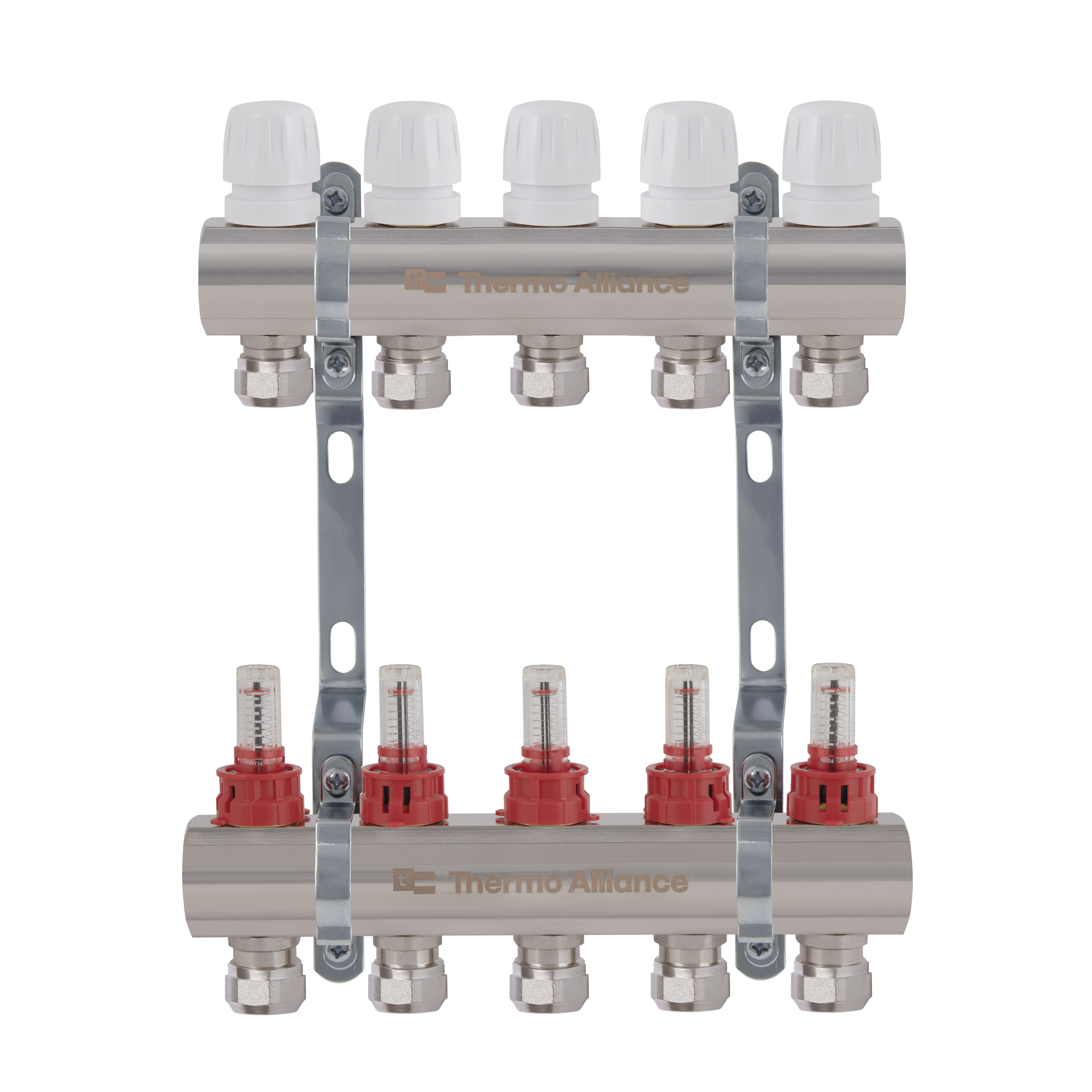 Коллектор с расходомерами и евроконосами Thermo Alliance серии Standart 1”х5 TAS235W5E используется для распределения воды и контроля расхода в системах отопления и водоснабжения. Обеспечивает долговечность и надежность.