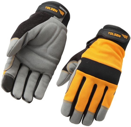Описание Tolsen Рукавички робочі, комбінований матеріал, р.10, жовто-сірі код товару 45044