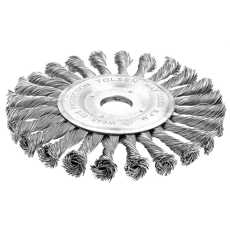 Щітка дискова Tolsen Профі - это ваш надежный помощник в борьбе с загрязнениями. Легко справляется с ржавчиной, очищает металл. Подходит для работы с различными поверхностями. Прочные материалы, продуманный дизайн. Не упустите шанс улучшить свой инструментальный арсенал!