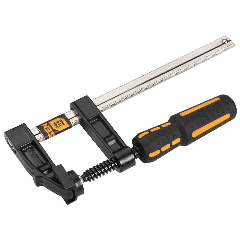 - Двокомпонентне руків’я, фігурна нікельована сталева рейка, губки з порошковим покриттям, фосфатований сталевий затискний стрижень, сила затиску