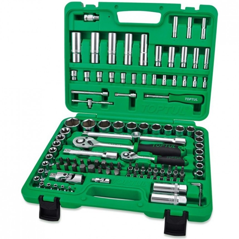 Описание Toptul Набор головок 1/4", 1/2", рукояток и аксессуаров в пластиковом кейсе код товару TOPTUL