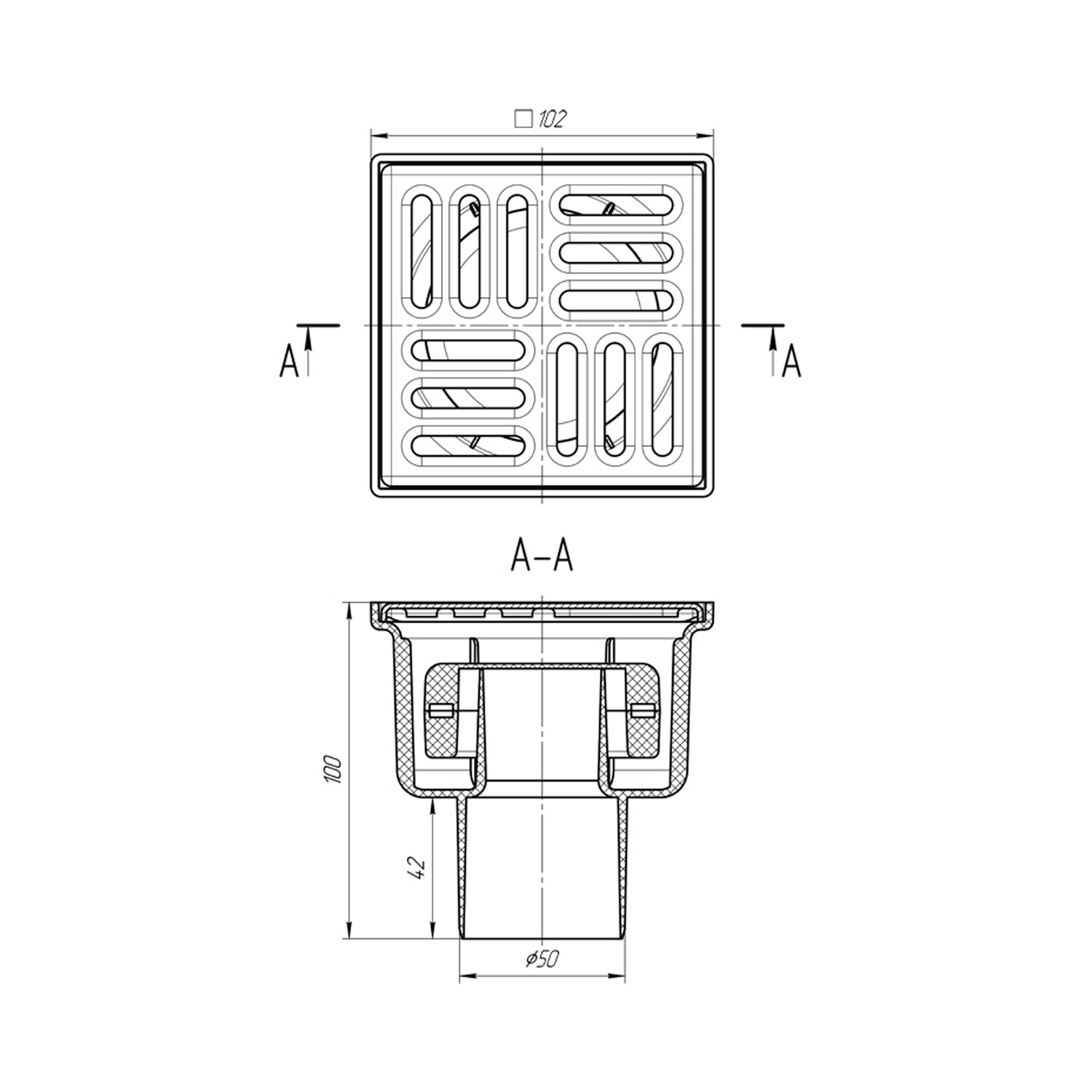 Трап ANIplast вертикальный 50 мм, решетка нерж. 10х10 см TA5202EU