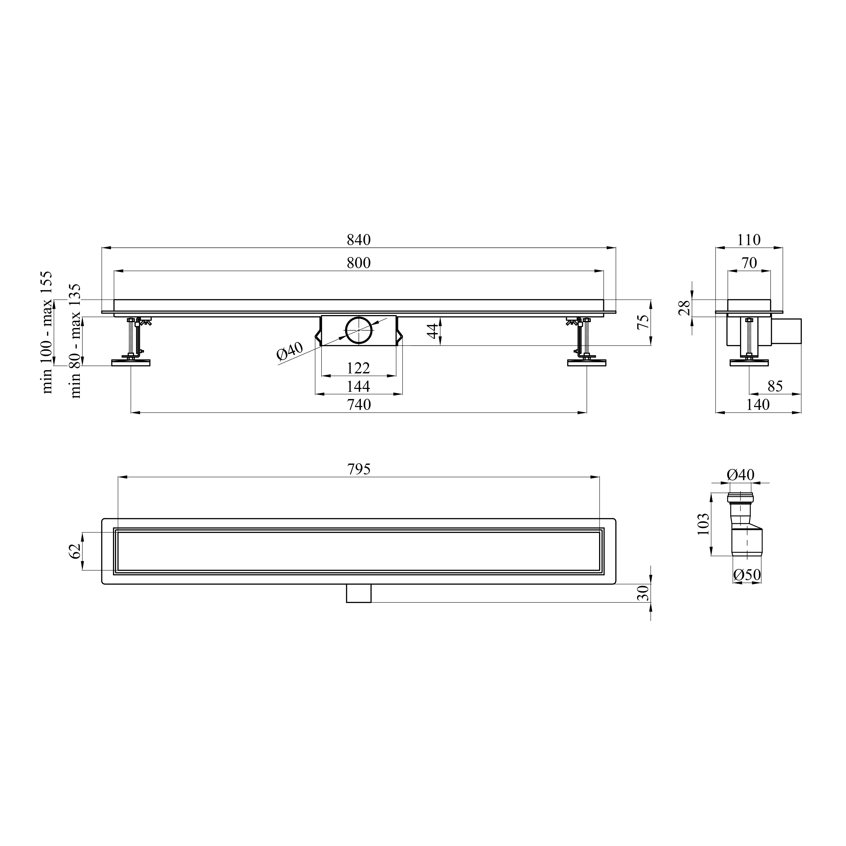 - 100-155х840х140