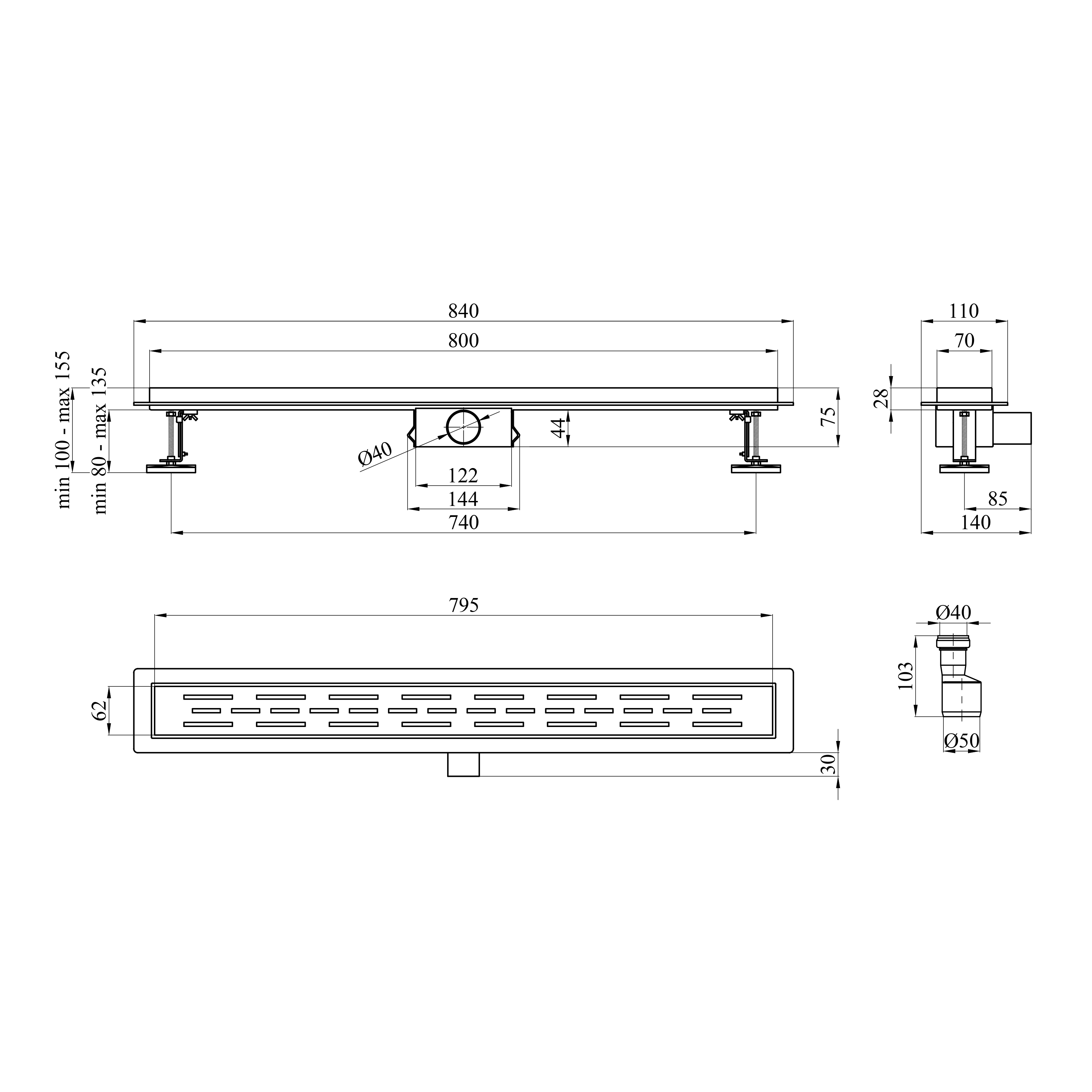 Характеристики Трап линейный Kroner KRP Eifel L80 Linien код товару CV034170