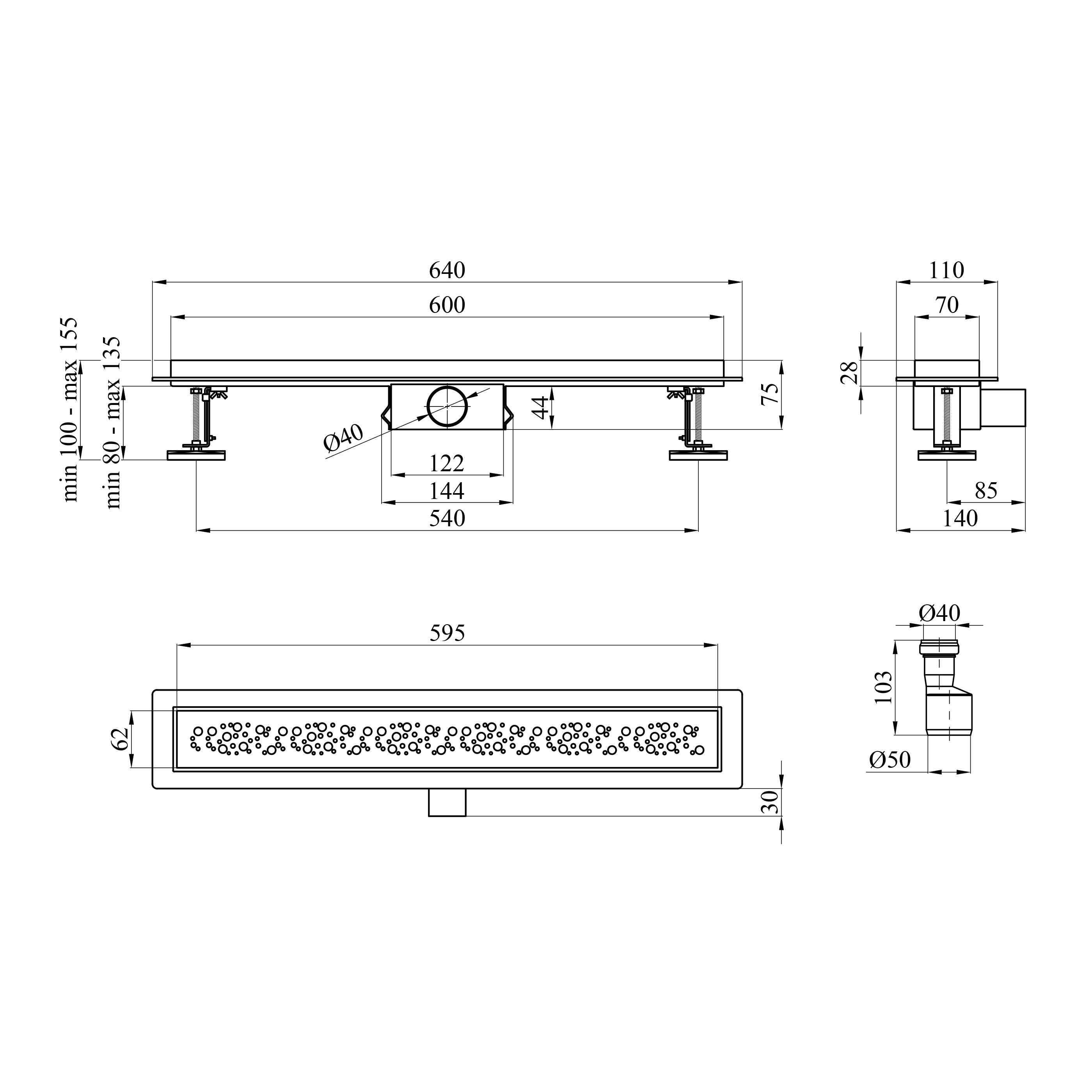 - 100-155х640х140