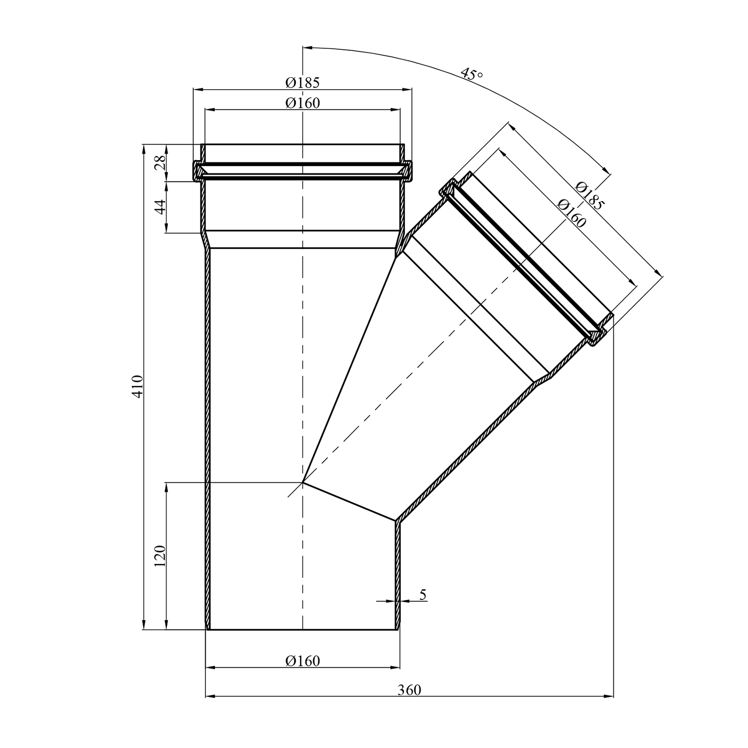 Диаметр: 160 мм (основной и отвод).