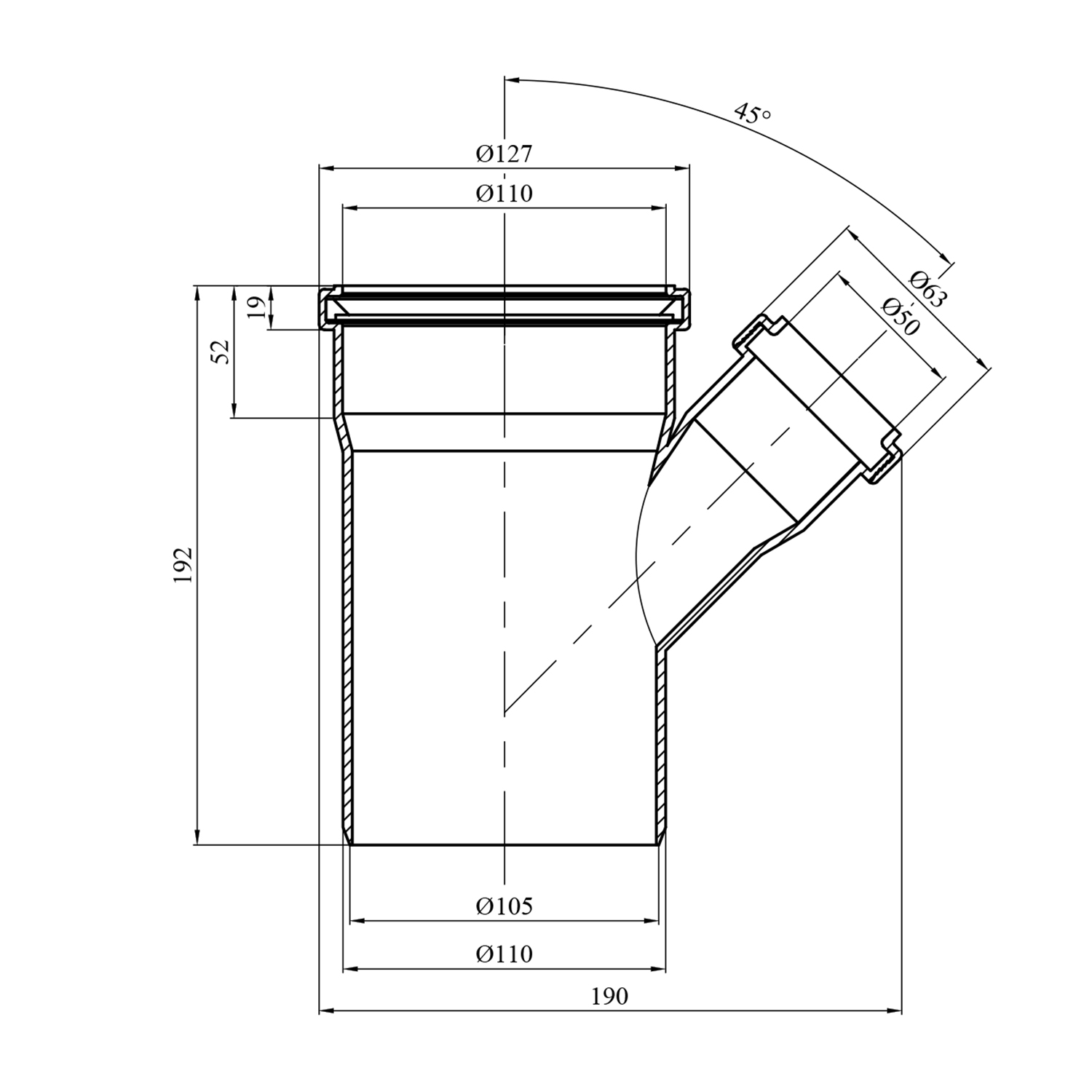 Описание Тройник Baux 110х50/45° для внутренней канализации код товару CV029712