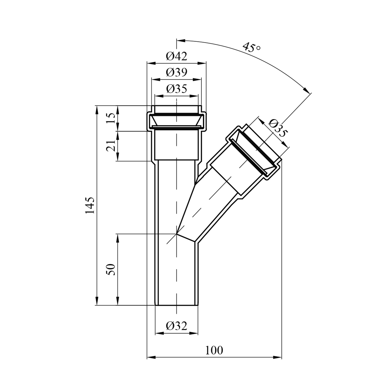 Описание Тройник внутренней канализации Rozma 32х32/45° код товару CV010128