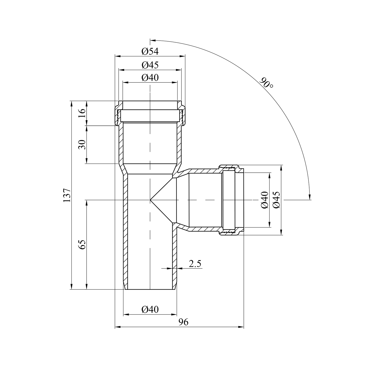 Характеристики Тройник для внутренней канализации Rozma 40х40/90° код товару CV034274