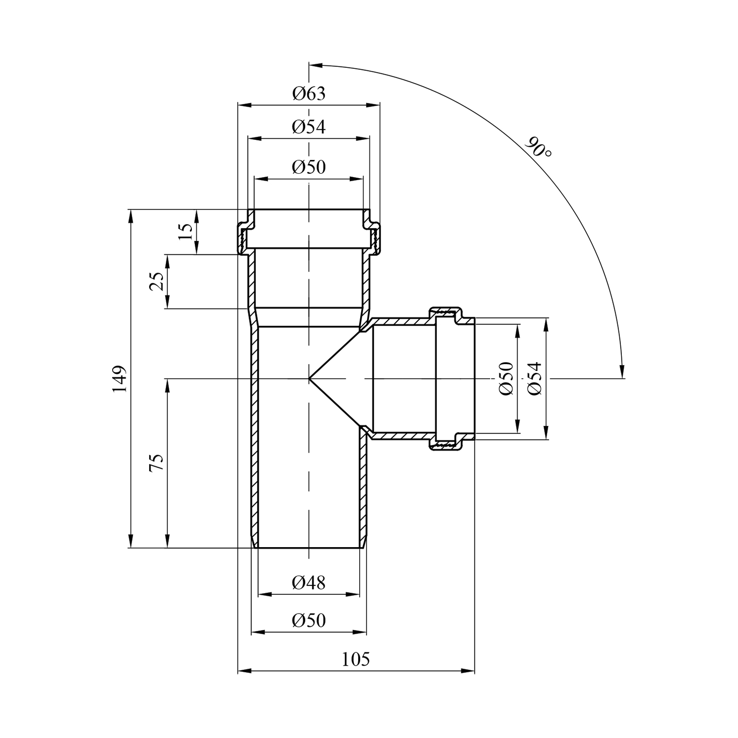 Описание Тройник для внутренней канализации Rozma 50х50/90° код товару CV016235